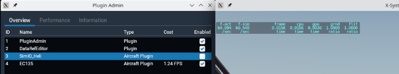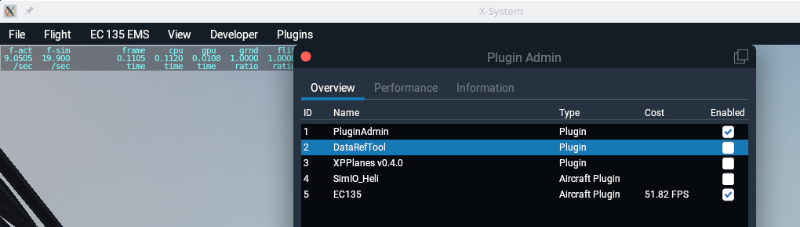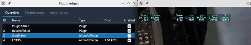 ich habe gestern meinen Simulationsrechner neu aufgesetzt, X-Plane 11 neu installiert und auch das neuste Flugmodell für X-Plane runtergeladen und installiert. Leider war die Performance nicht so, wie ich mir das vorgestellt hatte und bei einem Blick auf den Plugin Admin habe ich auch gesehen, warum: Das EC135 Plugin benötigt konstant zwischen 15 und 25 fps!