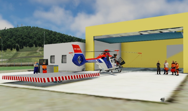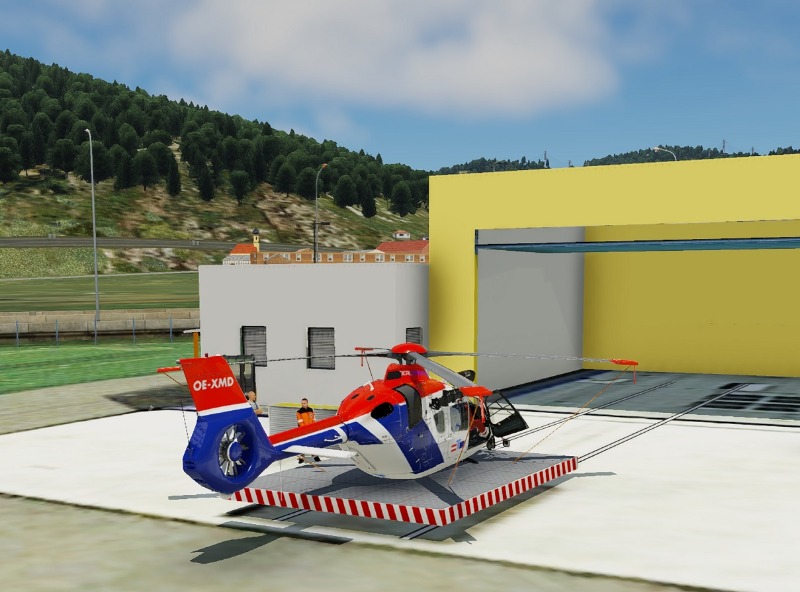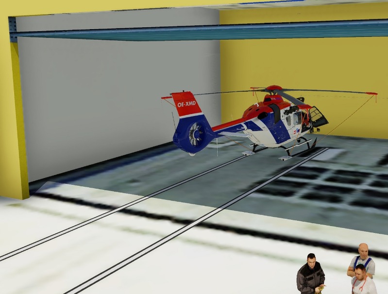 Ersmal steht dein Heli leider nicht korrekt auf der Platform. Um es zu vereinfachen habe ich pad und Hangar mal in einem Bild zusammengefügt.
