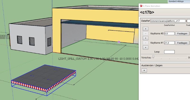 Ich habe heute versucht, in meine scenery mit dem ScenX die Heliplattform zu bewegen (die Hangartore hatten schon funktioniert - direkt in SketchUp erstellt). Soweit alles gut - ABER: die Plattform bewegt sich nicht, sondern nur der Heli fährt in den Hangar (und auch wieder zurück). Ich komme leider nicht dahinter, wo der Fehler liegt, habt ihr eine Lösung dafür?
